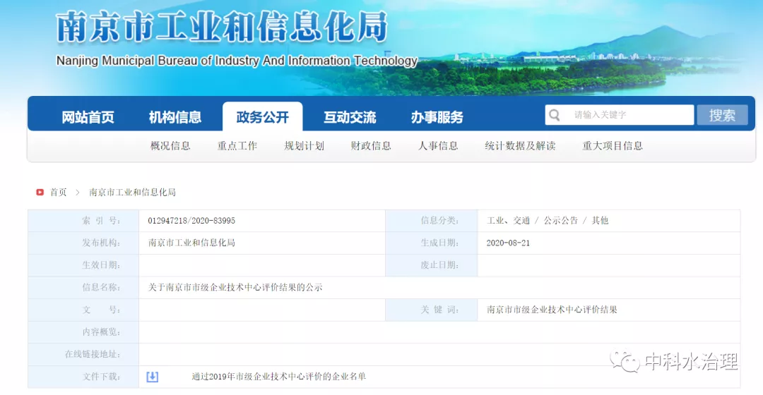 中科水治理獲得2019年“南京市市級企業(yè)技術(shù)中心”認(rèn)證