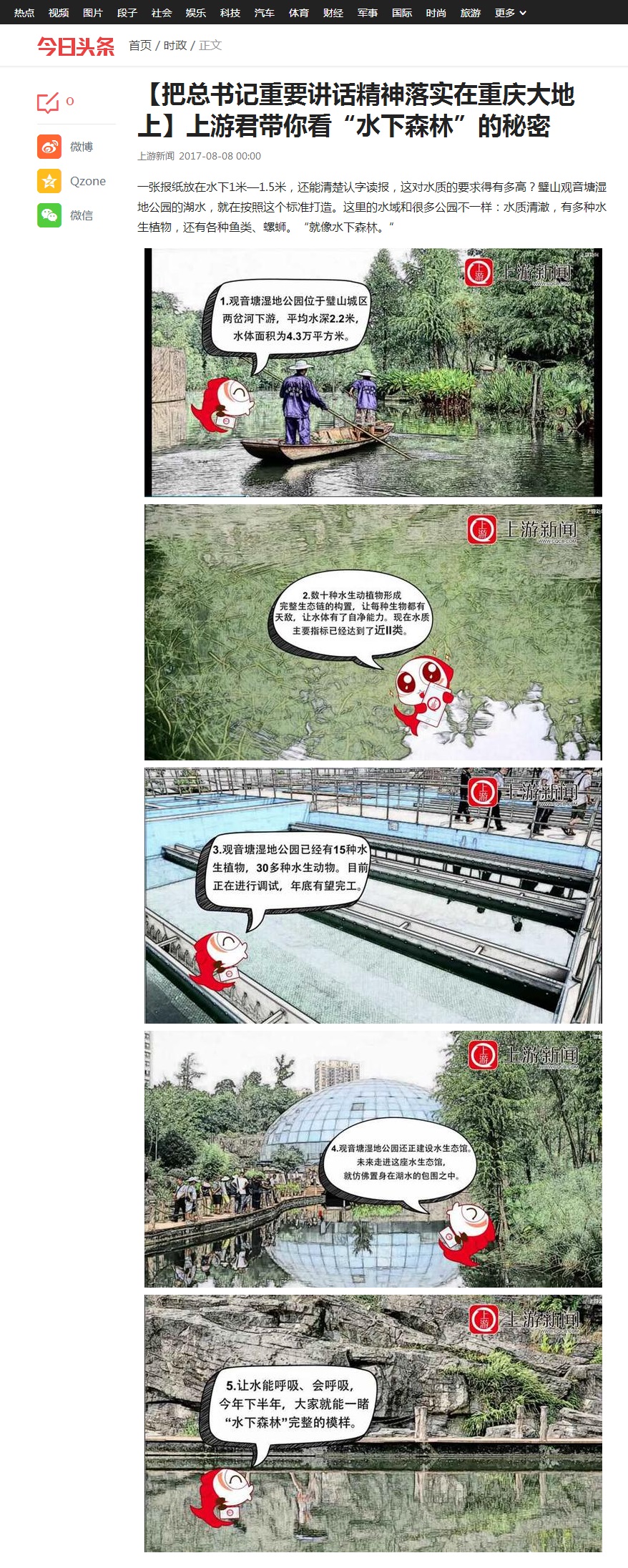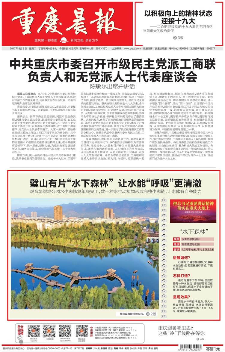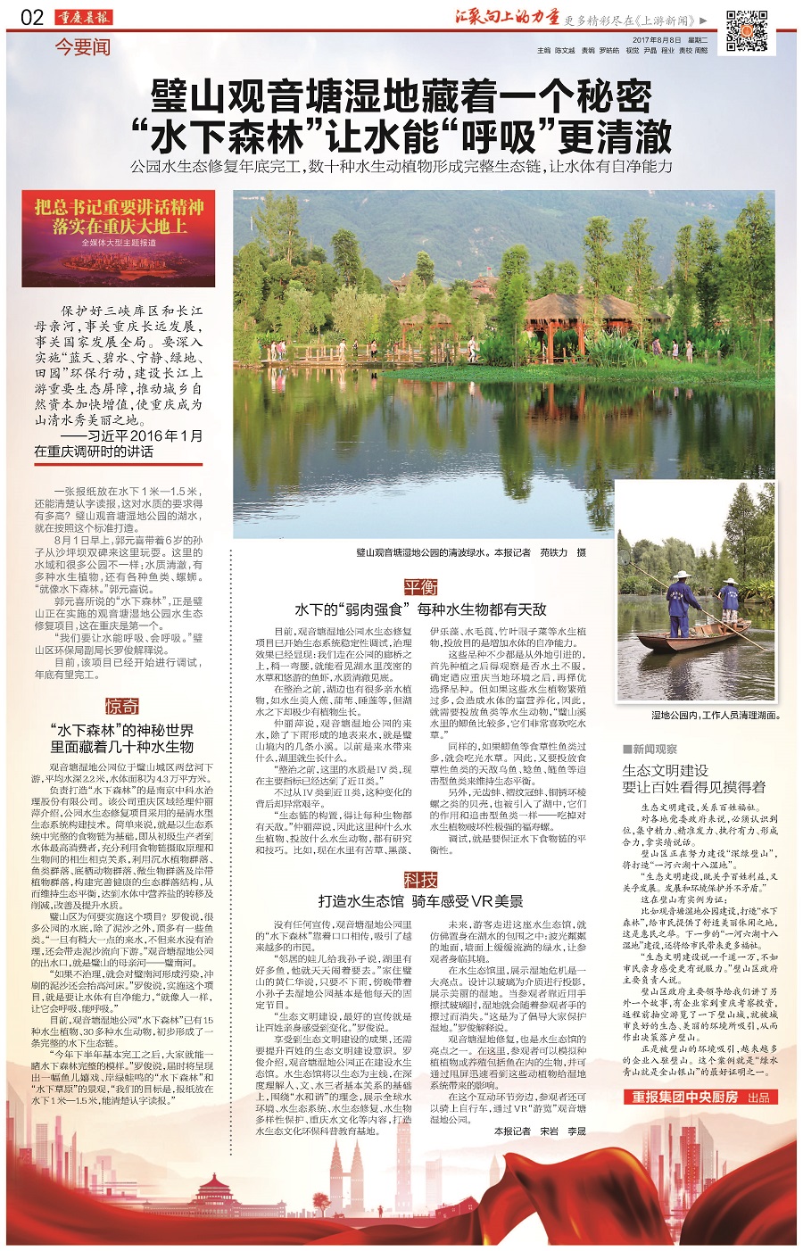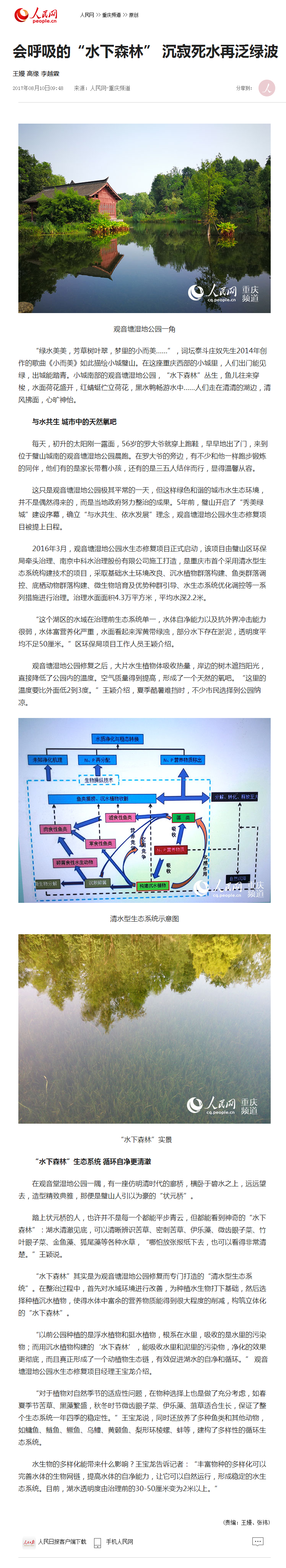 重慶日報、重慶之聲、重慶電視臺、重慶晚報、重慶晨報、重慶商報、華龍網(wǎng)、《當代黨員》雜志社等市級主流媒體記者,來到觀音塘濕地公園,實地探訪了“水下森林”建設情況,采訪了項目設計施工單位【南京中科水治理股份有限公司】工作人員。觀音塘濕地公園項目是由中科水治理傾力打造的精品水生態(tài)修復項目,也是重慶市首個生態(tài)文明建設示范基地。