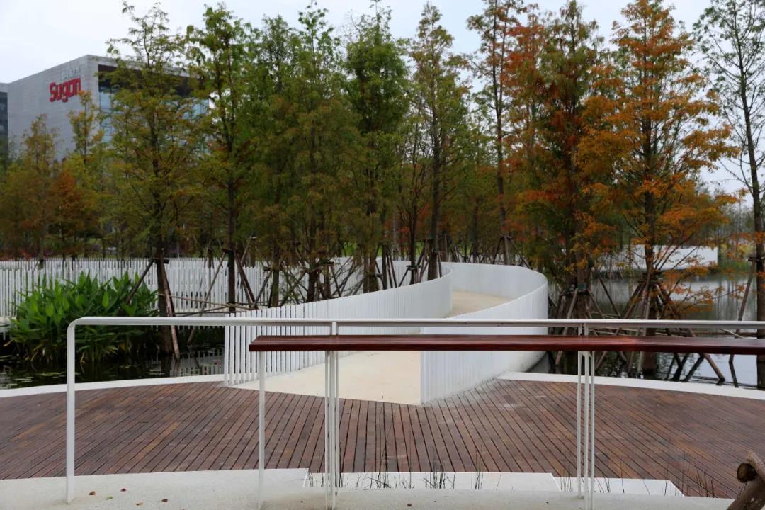 天府新區(qū)不僅僅對湖心島做了地形的處理,同時根據(jù)湖心島的高程、與水的關(guān)系配置了植物群落以及蜿蜒的弧形岸線等設(shè)計,使得湖心島的生物越來越豐富。
