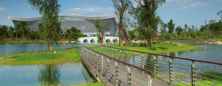 補(bǔ)水方式:通過(guò)污水處理廠一級(jí)A標(biāo)的尾水進(jìn)入濕地處理,使主要指標(biāo)達(dá)到地表水三類,然后再排入肖家河與河流的生活污水混合,將總氮降到10mg/L左右,再將混合水補(bǔ)充到錦城湖。