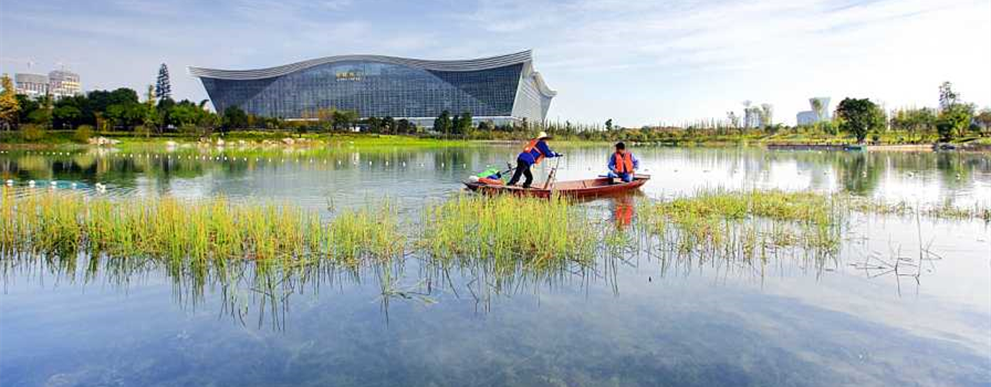錦城湖3#、4#湖生態(tài)系統(tǒng)構(gòu)建工程自2013年3月25日開(kāi)工至5月底主要施工任務(wù)完成。水體透明度達(dá)到2米,部分區(qū)域清澈見(jiàn)底,從6月1日開(kāi)始,工程進(jìn)入優(yōu)化調(diào)整階段。2014年4月通過(guò)竣工驗(yàn)收,錦城湖工程(3#、4#湖)清水型生態(tài)系統(tǒng)構(gòu)建完工后,水體清澈,水質(zhì)優(yōu)于《地表水環(huán)境質(zhì)量標(biāo)準(zhǔn)》GB3838-2002 Ⅳ類(TP<0.1mg/L,TN<0.5mg/L),水體生物多樣性高,沉水植物覆蓋度達(dá)到60%以上,有效抑制了水體富營(yíng)養(yǎng)化趨勢(shì),水體透明度達(dá)到2m,部分地區(qū)清澈見(jiàn)底,水體景觀性好。